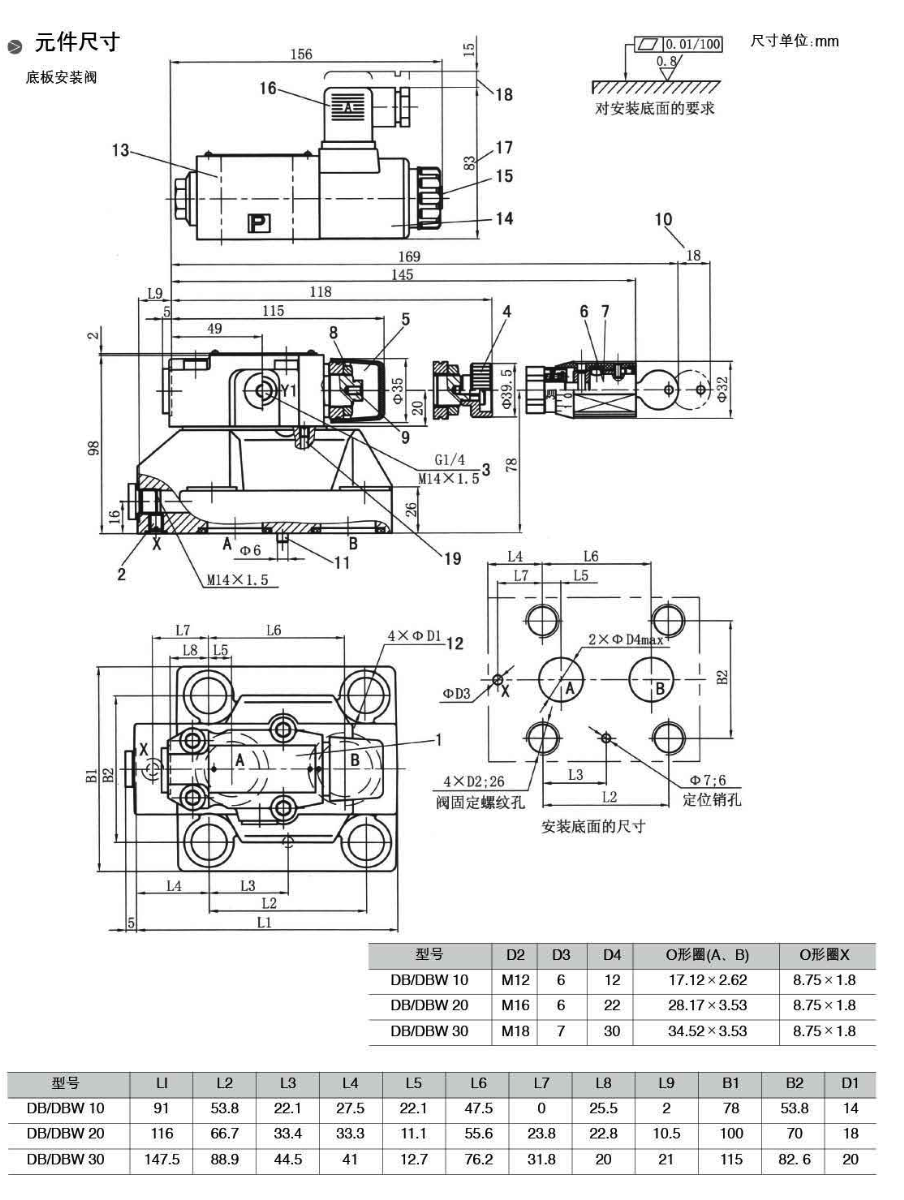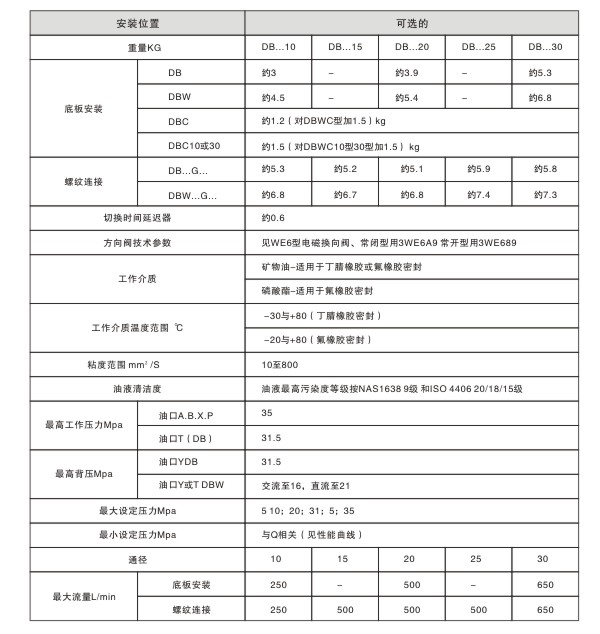 用于底板安裝,安裝面按DIN24340 E型,ISO 6264和CETOP-RP 121 H,用于螺紋連接,用于油路塊安裝。4種調整元件:①旋鈕②帶護罩的調節(jié)螺栓③帶刻度的有鎖旋鈕④帶刻度旋鈕。5種設定壓力,借助于安裝在其上的電磁方向閥操作卸荷??蛇x的切換時間延遲(僅DBW型)。