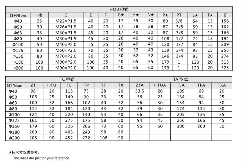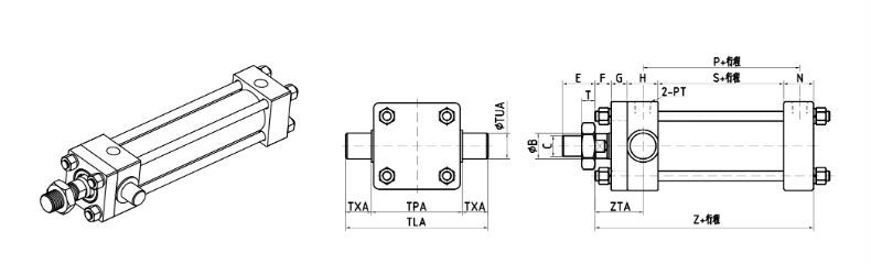 標準HOB+TA型 前耳軸型外形安裝尺寸圖