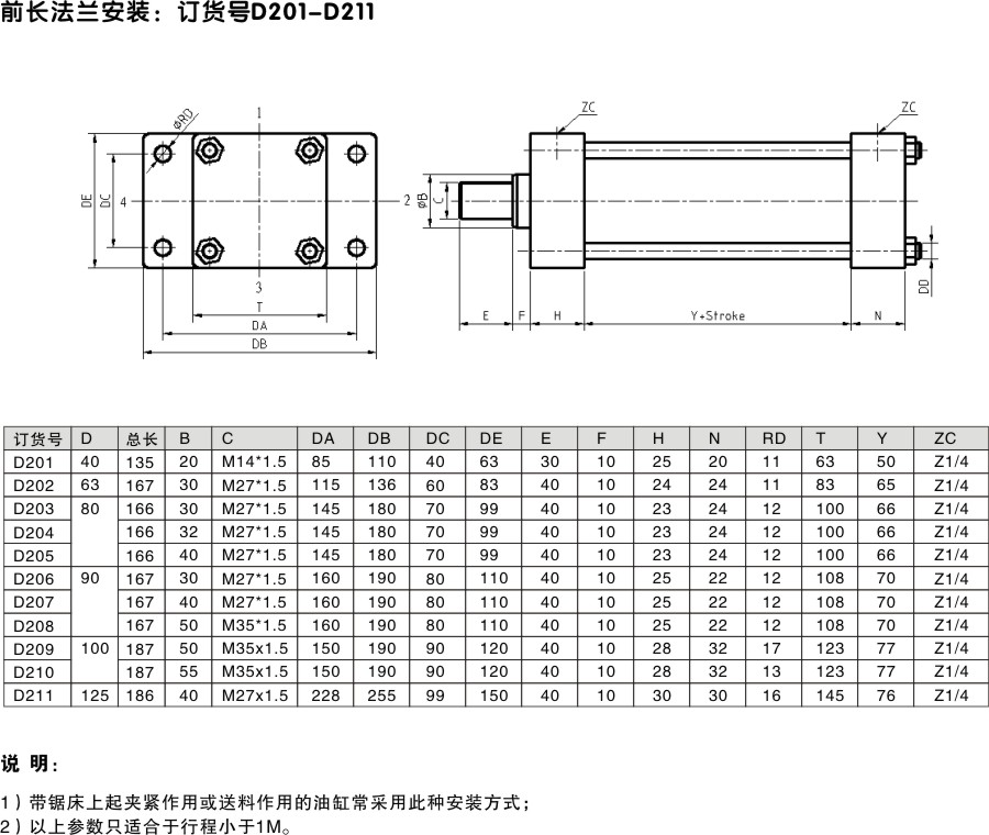 前法蘭安裝夾緊/送料油缸
