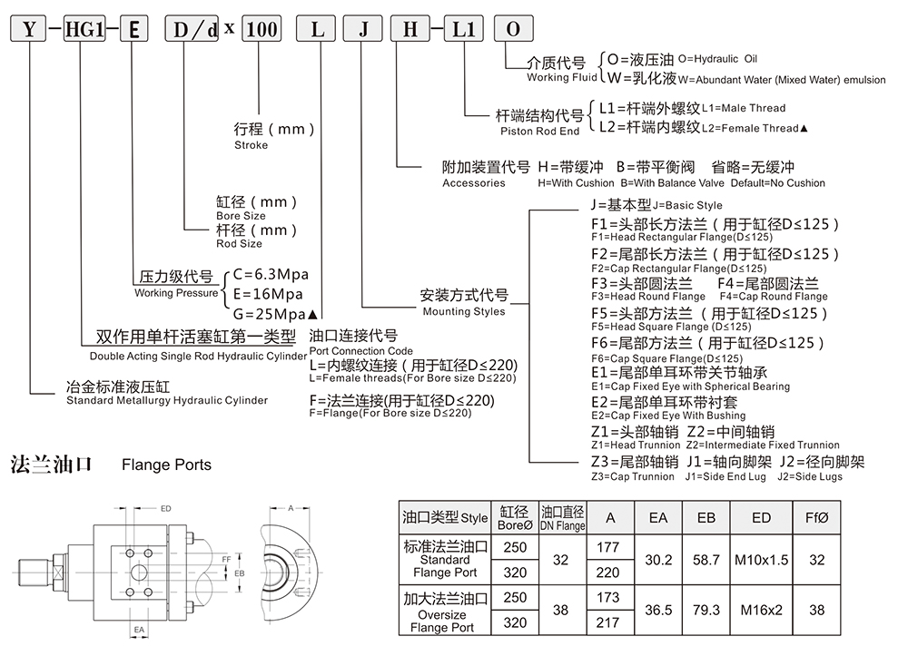 油缸型號說明