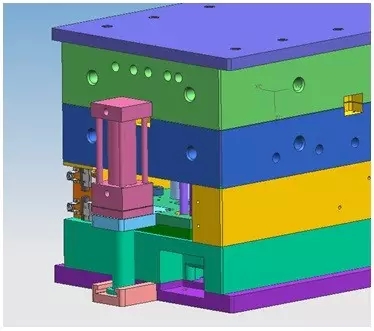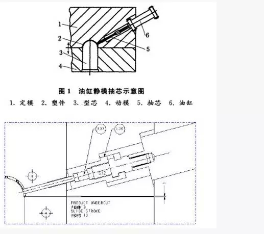 定模抽芯用油缸驅(qū)動(dòng),大大簡(jiǎn)化模具結(jié)構(gòu),降低成本;但需注意動(dòng)作順序的控制和滑塊鎖緊,以免動(dòng)作錯(cuò)亂損壞模具或油缸鎖緊力不足而無(wú)法封膠,抽芯力不足而抽不動(dòng)滑塊。