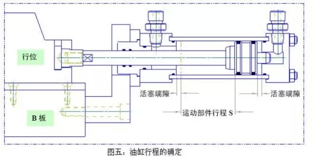 油缸行程L=運(yùn)動(dòng)部件的行程S+2×活塞端隙(活塞端隙一般選5mm)