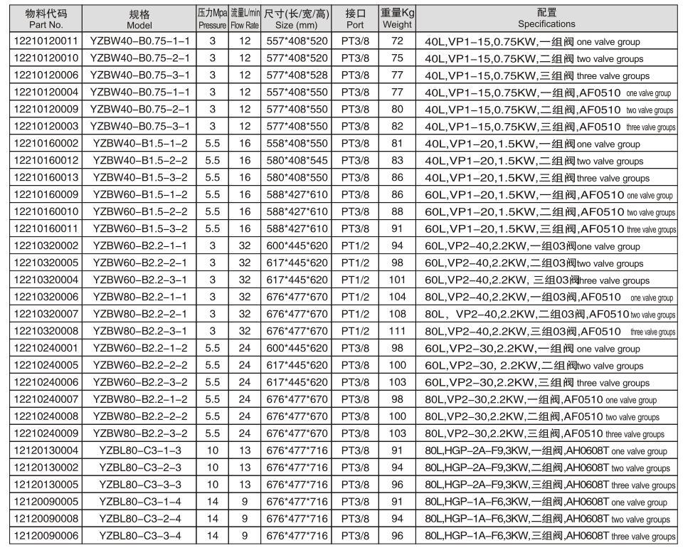 漢力達小型標準液壓泵站規(guī)格參數(shù):