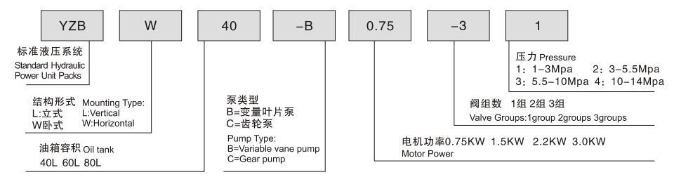 小型標準液壓泵站型號命名方式: